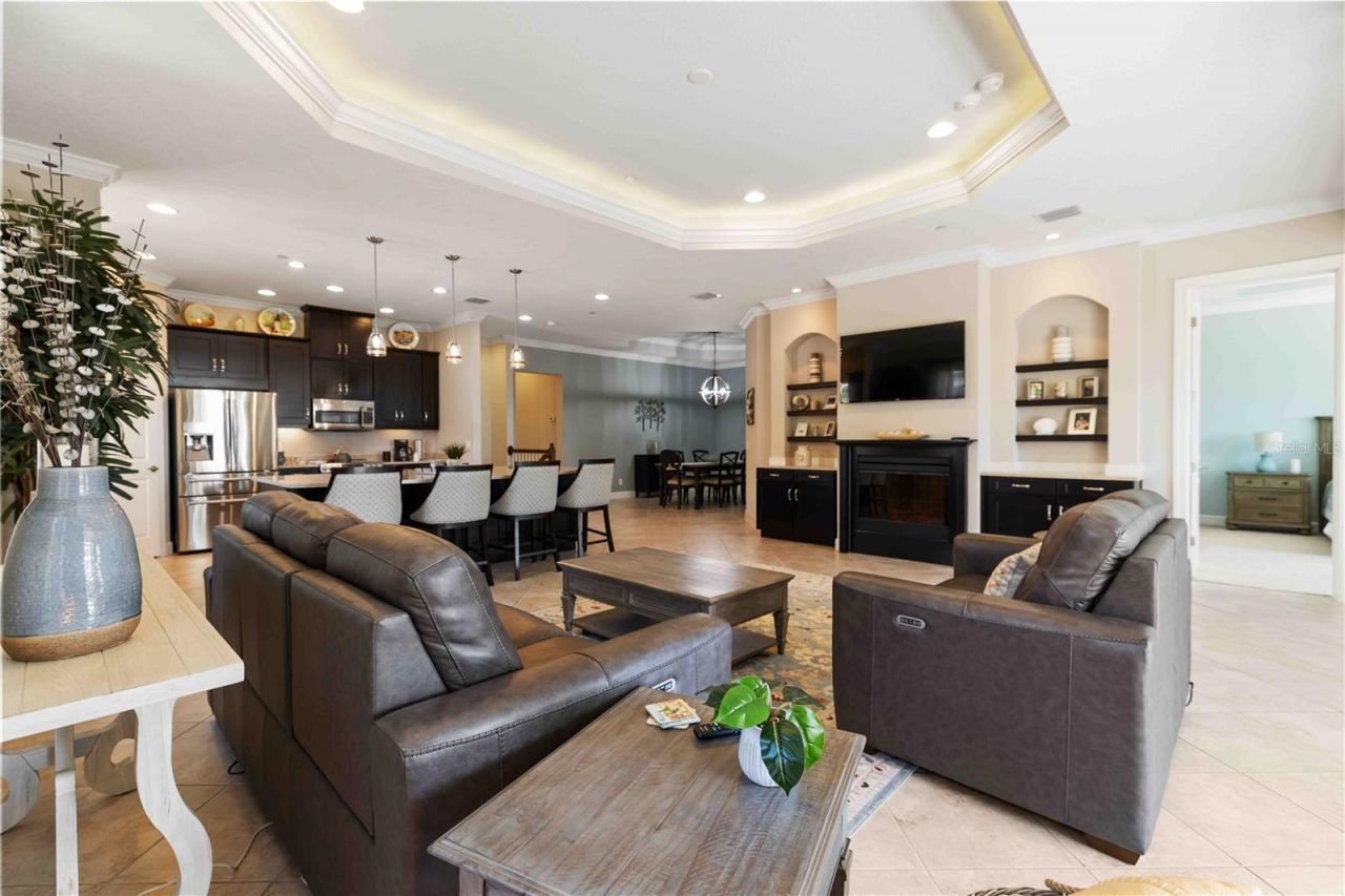 TURNKEY (all furnishings and appliances) end-unit luxury coach home offering maintenance-free living, 2,184 sq ft, 3 bedrooms, and 3 full baths-with no mandatory golf membership. Located in the upscale, gated Esplanade at Lakewood Ranch, this residence lives like a single-family home while delivering the convenience of condo living. The Esplanade community offers world-class golf, tennis, and resort-style amenities. This home features 90 degree corner sliding doors, flooding the space with natural light. The open floor plan showcases a spacious great room with custom built-ins, a cozy fireplace, and soaring 12-foot tray ceilings. Large sliders open to a private screened lanai, perfect for relaxing or entertaining. The chef's kitchen is designed to impress, featuring solid-wood Blanc cabinetry, an oversized granite island with breakfast bar and added storage, and stainless-steel appliances. The owner's suite is a serene retreat with room for a king-size bed and a spa-inspired ensuite bath offering dual granite vanities, an oversized walk-in shower with multiple heads and rain shower, and a generous walk-in closet. A split-bedroom layout provides privacy, with one guest bedroom offering its own ensuite bath-ideal for hosting. Additional highlights include three full bathrooms, a laundry room with cabinetry and sink, and an attached oversized one-car garage with extra storage. While golf membership is optional, residents enjoy access to Esplanade's exceptional amenities: a championship golf course, elegant clubhouse with dining overlooking the 18th green, resort-style pools and spas, full-service salon, Bahama bar, state-of-the-art fitness and wellness center, tennis and pickleball courts, dog parks, social clubs, and more. Situated in Lakewood Ranch, the number one master planned community for all ages,this home offers luxury living just minutes from shopping, dining, entertainment, and Gulf Coast beaches.