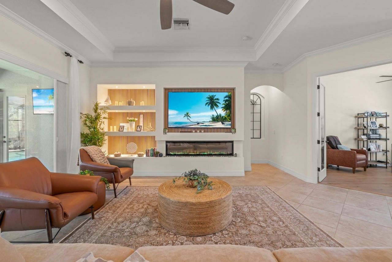 Welcome home to this 4 BED, 2.5 BATH, 3-CAR GARAGE POOL HOME with SOUTHERN EXPOSURE, perfectly positioned on an oversized 0.31-ACRE CUL-DE-SAC LOT with PRIVATE PRESERVE VIEWS-offering a tranquil and secluded setting.The kitchen has been thoughtfully RENOVATED with NEW COUNTERTOPS, NEW COOKTOP, and NEW REFRIGERATOR, complemented by REFINISHED CABINETRY w/ soft close doors for a clean, modern feel. The main living area features a CUSTOM BUILT-IN with ELECTRIC FIREPLACE, creating a warm and inviting focal point-perfect for gathering with family and friends.Interior upgrades include LUXURY VINYL PLANK (LVP) FLOORING in the PRIMARY SUITE and 4TH BEDROOM (currently used as an office/den), NEW CARPET in the two guest bedrooms, CROWN MOLDING, UPDATED LIGHTING, CUSTOM CEILING FANS, UPGRADED SHOWERHEADS, WINDOW & SLIDER TREATMENTS, and a CUSTOM PRIMARY CLOSET SYSTEM.Step outside to the expansive lanai featuring a CUSTOM HEATED POOL & SPA, surrounded by lush landscaping for added privacy and equipped with NO-SEE-UM SCREENS-perfect for year-round outdoor living. A mounted TV is included, making this an ideal space for entertaining. The FENCED-IN YARD adds both privacy and functionality.The SIDE-LOAD OVERSIZED 3-CAR GARAGE offers ample space for vehicles, storage, or a golf cart. The home is equipped with FRONTIER FIBER INTERNET (1 GB speeds), WHOLE-HOUSE WIFI EXTENDERS, a GENERATOR WITH ELECTRIC START, LANDSCAPE LIGHTING, and a WHOLE-HOUSE SURGE PROTECTOR for added peace of mind.The professionally landscaped yard features mature palms and WIRED LANDSCAPE LIGHTING in both the front and back. As an added bonus, the INTERIOR AND EXTERIOR OF THE HOME HAVE BEEN RECENTLY REPAINTED.Low HOA fees include LAWN MAINTENANCE, allowing for easy, low-maintenance living. Located in highly sought-after Lakewood Ranch with top-rated SCHOOLS, GOLF, DINING, SHOPPING, and amenities nearby.MOVE-IN READY with no build wait or construction stress-start enjoying the Florida lifestyle today! (Furniture is available for separate bill of sale)