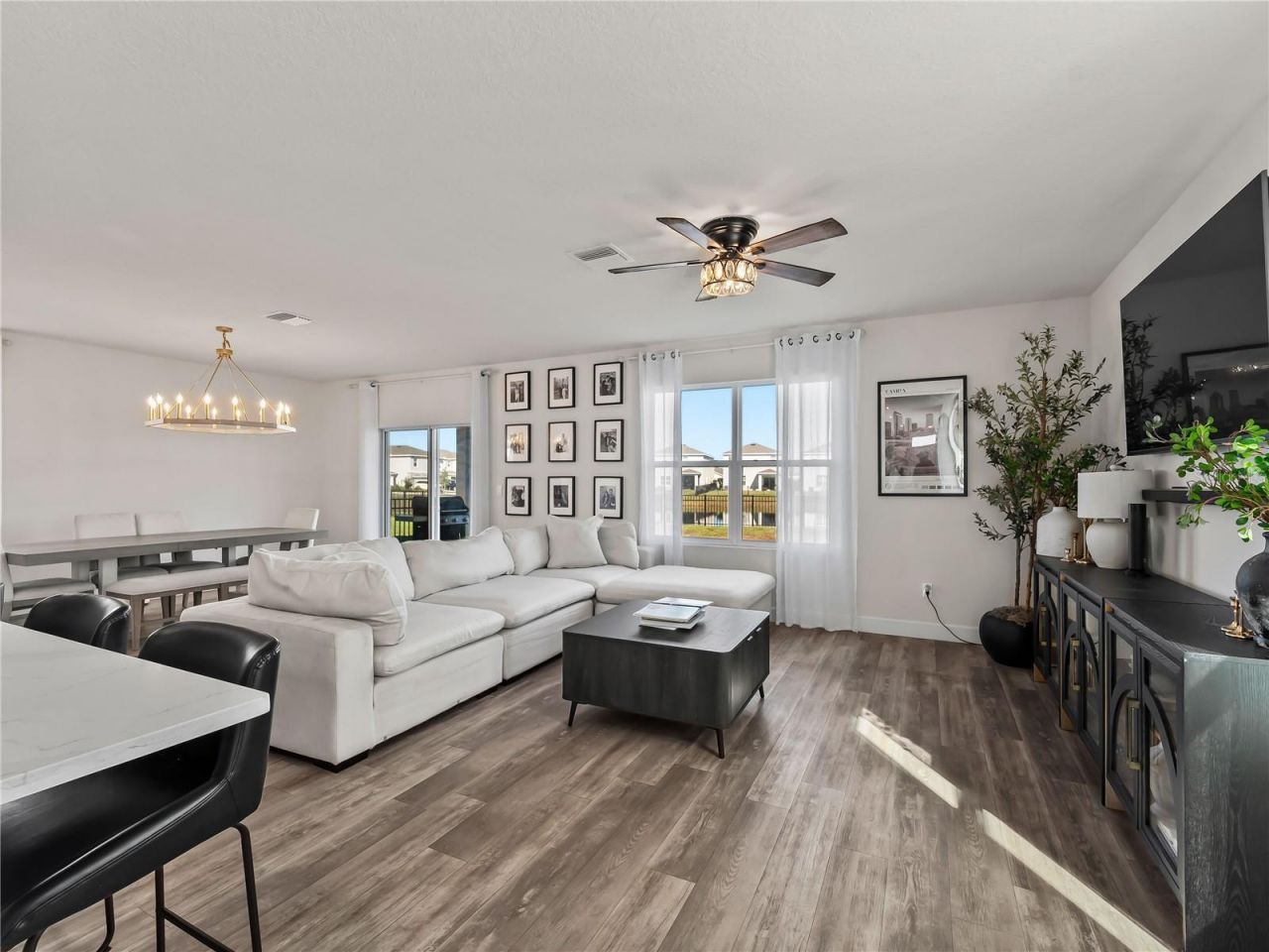 Move right into this meticulous open and light-filled four bedroom, two-and-a-half-bathroom home with a very spacious kitchen and open concept floor plan, perfect for entertaining! This stunning home has undergone significant renovations far beyond standard builder offerings, including luxury vinyl flooring throughout, upgraded quartz countertops in the kitchen with gold hardware, new powder room vanity, light fixtures, ceiling fans, freshly painted, fully fenced backyard, and a whole-home water filtration system. Upstairs, the primary suite features an oversized walk-in closet. The master bathroom has dual sinks and a separate water closet. Plus, three other bedrooms, a full second bathroom with dual sinks, and the loft at the top of the stairs provides extra space for work and play, as well as an additional closet for more storage space. Star Farms is a gated, resort-style maintenance-free community with A-rated schools and numerous amenities including a clubhouse, tiki bar and on-site restaurant, resort-style pools, two fitness centers, golf simulator, pickleball, tennis courts, basketball court, baseball field, playground, dog parks, walking and biking trails, and social events and gathering spaces. All of this to offer, and located just minutes from Lakewood Ranch Main Street, shopping at UTC, Waterside, top-rated tennis and golf courses, fine dining, Sarasota Polo Club, Lakewood Ranch CC, Lakewood Ranch Athletic Club, SRQ International Airport, medical facilities, and a short drive to the world-famous beaches, including Siesta Key, Lido Key, and Anna Maria Island. It's very rare to find such a fun and affordable luxury lifestyle that has all this to offer!