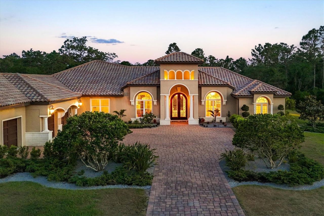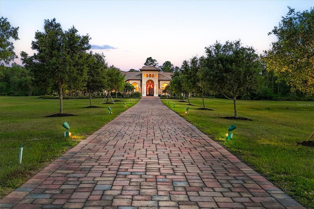 Set on over seven acres in the prestigious equestrian community of Panther Ridge, this custom-built estate offers refined single-story living surrounded by serene preserve views and a private lake. Thoughtfully designed for everyday living and elegant entertaining, the residence spans four bedrooms, four and a half baths, a dedicated office and a spacious bonus room, all underpinned by quality craftsmanship, security of impact-rated windows and front door, and impeccable overall design. A long, private drive leads to a stately entry framed by double-arched, hurricane-rated wood and glass doors with custom ironwork. Inside, high ceilings, architectural detailing, and a combination of rich wood and inlaid tile flooring create a sophisticated yet inviting atmosphere. Expansive windows bring in natural light and connect the interiors to the tranquil outdoor setting. The kitchen is professionally equipped with premium Dacor appliances, including a six-burner gas cooktop, wall oven, microwave drawer, built-in refrigerator and dishwasher. A custom pantry, custom-built breakfast banquette and seamless flow into the living room make this space ideal for everyday use and casual entertaining. A formal dining area is framed by tray ceilings and detailed millwork, offering a timeless setting for special occasions. The home's guest accommodations include three well-appointed suites, two sharing a Jack and Jill bath, and a third with a private en suite and walk-in closet. A spacious bonus room with vaulted beamed ceilings offers flexibility as a media room, studio or play space. The home office, beautifully designed with custom built-in cabinets, provides a quiet and functional workspace. The expansive primary suite is a private retreat featuring dual walk-in closets and a spa-inspired bath with a freestanding soaking tub, walk-in shower with dual heads, dual vanities and elegant finishes throughout. Outdoor living is equally impressive. The screened lanai includes a saltwater heated pool and spa, an outdoor kitchen with built-in grill and multiple seating areas, all set against a private preserve. Limestone pavers and extensive landscaping elevate the outdoor experience. Additional features include whole-house water filtration and water softener systems, upgraded landscaping and thoughtful storage throughout. Minutes from Lakewood Ranch and close to top-rated schools, dining, shopping and Gulf Coast beaches, this estate offers the rare combination of privacy, luxury and convenience. Panther Ridge is known for its expansive homesites, equestrian trails and peaceful natural setting, making it one of Sarasota's sought-after communities. This property is more than a residence, it's an exceptional lifestyle opportunity.
