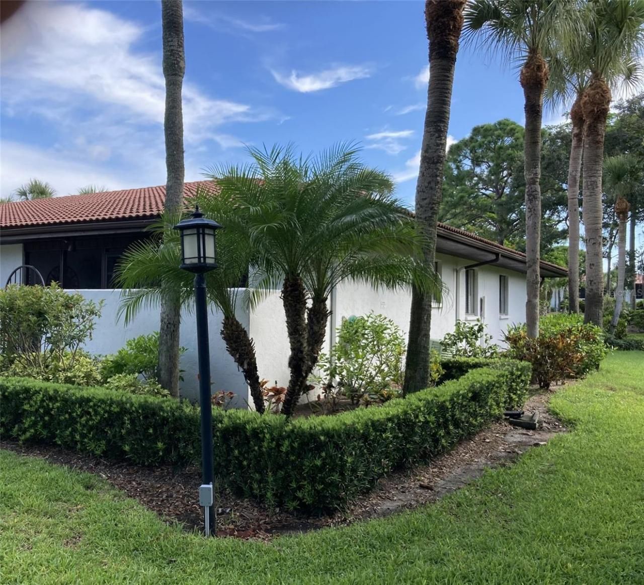 This 1500 square foot sun filled condo is an end unit 'villa with panoramic views on three sides located on a private cul-de-sac off El Conquistador Parkway. It is single story, one level...no stairs and no neighbors above, which is fully furnished and turnkey ready. You enter through a gated front courtyard with a large screened lanai and laundry. The roomy kitchen has a pass-through and plenty of storage. The large living room and dining area lead to a spacious enclosed back lanai, which is air conditioned, that faces the gardens and has direct access to the pool and spa. Two generous bedrooms each have large walk-in closets and en-suite full baths. There is a covered carport and ample guest parking. In 2023, the electric panel and water heater were replaced. The maintenance fee covers cable TV, internet, water/sewer/trash, community pool and spa, landscaping, exterior building and all common area maintenance. Valencia is a pet friendly community allowing one pet, no weight limit. This roomy villa is situated in Valencia Gardens which is in the El Conquistador/IMG Golf and Country Club area. Bradenton is a peaceful unknown gem along the gulf coast of Florida just south of Tampa, with easy access to all the attractions that Florida has from the Ringling Museum to Disney World. It is only a short drive to restaurants, supermarkets, the Bradenton/Sarasota airport and the IMG Academy. A 15 minute drive west and you are on Anna Maria Island with it's sandy beaches and beach front dining. A 25 minute drive south is St. Armand's Circle in Sarasota for dining, up-scale shopping and cultural attractions. See why the residents here love to call Valencia Gardens their winter getaway or full time home.