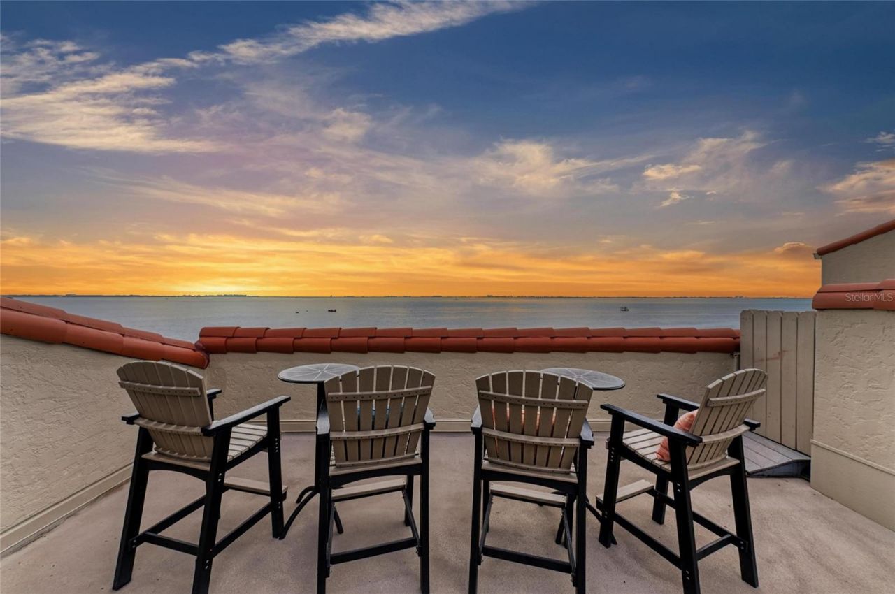 Priced to sell - BEST Value on Sarasota Bay-Rare Corner PENTHOUSE with Sunset Views! Elevate your lifestyle in this exceptional single-level, top floor, rare corner Penthouse at The Conquistador Bay Club, where stunning Sarasota Bay panoramas unfold from nearly every room. Savor breathtaking sunsets and the twinkling lights of the Ringling Bridge by night-all from your private 800 sq ft rooftop terrace, ideal for al fresco entertaining. This 2-bedroom, 2-full-bath residence spans 2,224 sq ft under air with a relaxed coastal vibe, blending seamless indoor-outdoor Florida living through double French doors connecting the great room to the expansive terrace. Awaken to serene southern bay views in the generously sized owner's retreat, featuring a large walk-in closet and luxurious ensuite with dual sinks, a Jacuzzi tub, separate shower, and rich wood cabinetry. The private guest suite, overlooking the pool area, offers a large walk-in closet and easy access to the guest bath. The open-concept great room floor plan (no wasted space), dining, and kitchen-wrapped in windows-flow effortlessly, maximizing light and space along with the vaulted ceilings. True luxury living in a low-density, three-story building (28 units total, across 5 buildings): no shared walls with neighbors in the Penthouse, interior laundry, a private oversized two-car garage with a spacious private (locked) storage room, and a dedicated penthouse elevator for effortless access. Peace of mind is assured with impact-resistant hurricane sliders and windows on the bay side. Conquistador Bay Club delivers premier bayside living-this unit is directly on the water with approximately 40 ft of bay frontage. Enjoy the community pool, spa, and kayak launch, all while benefiting from association dues that cover exterior building maintenance, building insurance (including flood), grounds care, pool/spa maintenance, escrow reserves, and penthouse elevator maintenance. The association has passed the milestone structural integrity inspection, fully funded reserves per the study, and boasts brand-new roofs. Steps to IMG Academy, Golf, Tennis and waterfront dining; not far from The Sarasota Bradenton International Airport, vibrant Downtown Sarasota, and the pristine Gulf beaches of Anna Maria Island. Tucked in tranquil serenity yet connected to it all. Come and live the Florida lifestyle that you have always dreamed of!