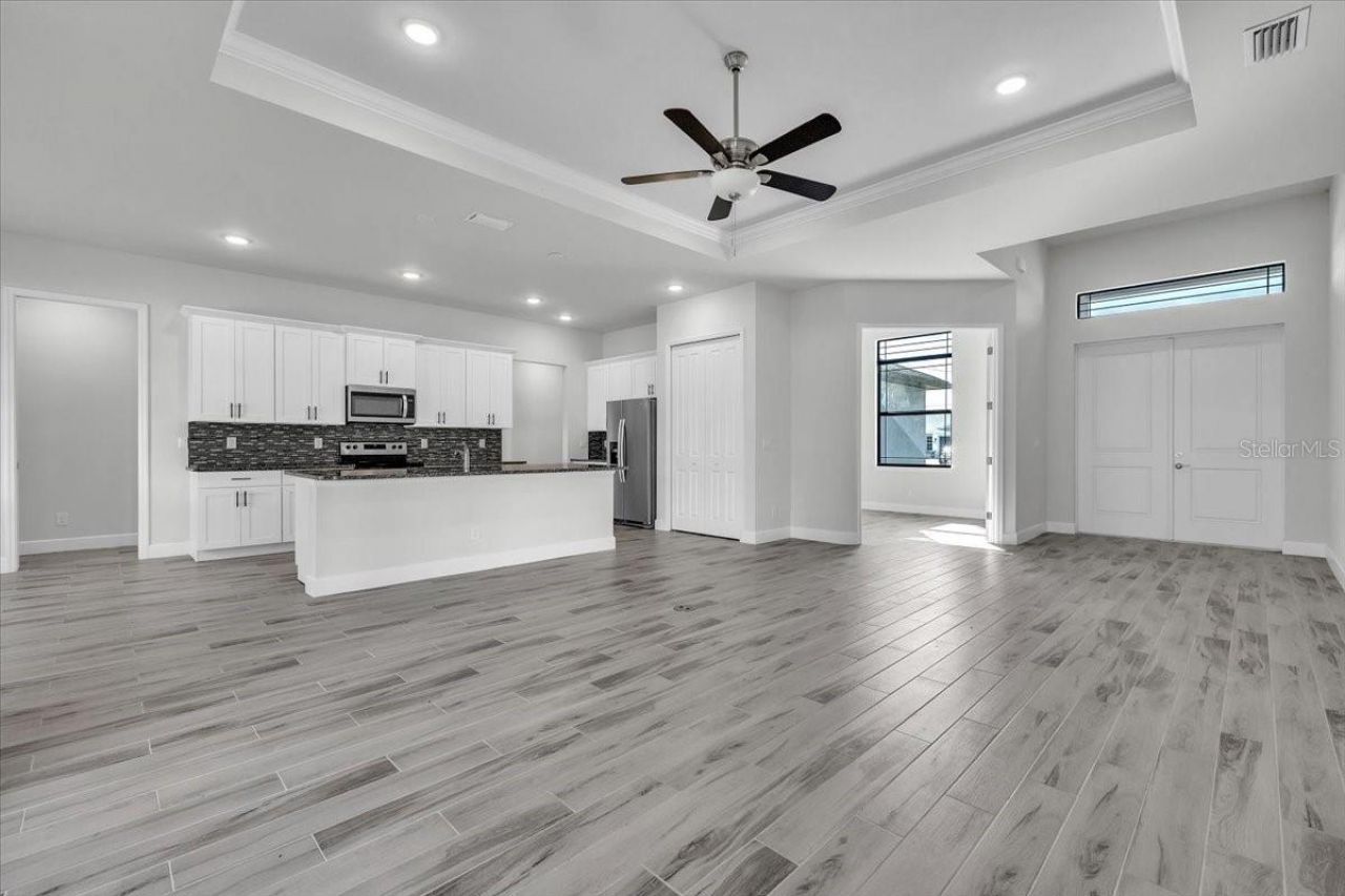 Price Reduced -2-1 Buydown rate available, APR 4.135 , truly making this new construction home affordable. (See picture #2 for details, this adds exceptional value and flexibility. Discover this brand-new, beautifully crafted home offering city water and flood zone for added peace of mind. Built with hurricane-impact windows and doors, this residence blends safety, quality construction, and modern coastal style. The thoughtfully designed split-bedroom floor plan features three spacious bedrooms, a large den, and two full bathrooms. At the heart of the home, the gourmet kitchen shines with a granite-topped island, tile backsplash, stainless steel appliances, a pantry closet, and white shaker soft-close cabinetry-creating a bright and elegant space for gathering and entertaining. The open-concept layout is enhanced by a soaring 12-foot tray ceiling in the expansive living area, which flows seamlessly into a dedicated dining or breakfast nook. Luxury plank flooring extends throughout, while a large sliding glass door fills the home with natural light and opens to the covered lanai, perfect for embracing the Southwest Florida lifestyle. The guest wing includes two bedrooms and a full bathroom with direct lanai access, making it ideal for future pool plans. The private primary suite offers a true retreat, featuring a tray ceiling, sliding doors to the lanai, dual walk-in closets, and a spa-inspired en-suite bath with a walk-in shower, garden soaking tub, dual vanities, shaker cabinetry, and a private water closet. Step outside to the spacious covered lanai with an outdoor ceiling fan-perfect for relaxing or entertaining. Located in a highly desirable neighborhood with no HOA fees, this home offers the freedom to live or rent without restrictions or monthly dues. Conveniently close to fine dining, boutique shopping, grocery stores, medical facilities, parks, and marinas, and just a short drive to Sanibel, Captiva, and Fort Myers Beach, this home places the best of Southwest Florida living right at your doorstep. **PLEASE ENJOY THE 3D INTERACTIVE VIRTUAL TOUR ASSOCIATED WITH THIS LISTING**